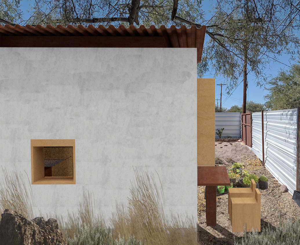 This project was a proposal (under permit) for certain residents in the Tucson area, where the premise was a strawbale construction typology for midsized lots.